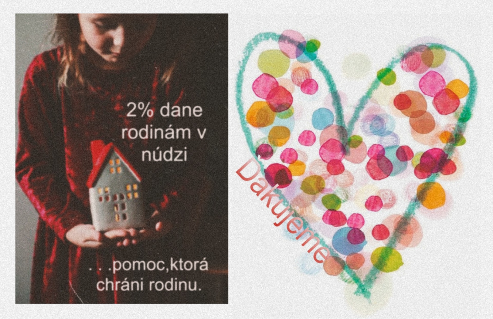 Ďakujeme všetkým, ktorí sa v uplynulých rokoch rozhodli podporiť naše občianske združenie v prospech detí a rodín ohrozených chudobou, násilím a inými sociálnymi situáciami. Budeme veľmi radi ak podporíte našu činnosť aj v súčasnosti. Premeňte Vaše 2% na radosť detí v núdzi.